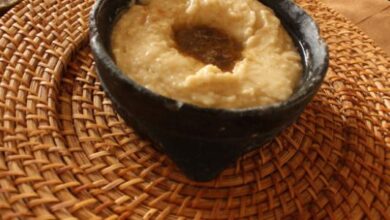 • استعملي الخلاط الكهربائي؛ لتنعيم الهريس بالشكل المطلوب، باستعمال مضرب التقليب، ثمّ اسكبيه في طبق التقديم وضعي وسطه طبقاً عميقاً مليئاً بالسمنة الذائبة.
