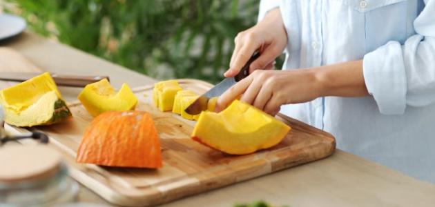 • نضع مكعّبات اليقطين في قدر مع كميّة من الماء على النار، ونتركه حتى يَغلي لمدة عشر دقائق.