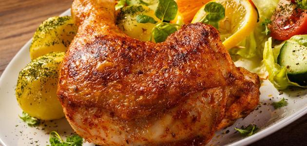 - نقلب الدجاج بالمكوّنات، ثمّ ندخل الصينية في الفرن حتى يتحمر الدجاج.