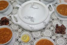 • يُقدم الطاجن على هيئته على السفرة.