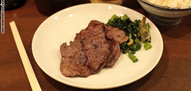 - بعد ذلك ينزع جلد اللسان ويشرح إلى شرائح عريضة ويقدم مع صلصة الطماطم.
