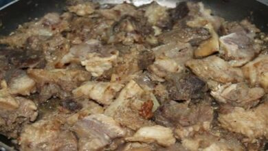 - يغسل اللحم جيداً بالماء البارد، ثمّ يوضع في قدر ويُسكب عليه مقدار من الماء بحيث تغمر القطع تماماً.