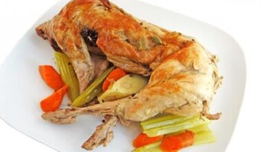 - تغلّف الصينيّة بالقصدير، وتوضع في الفرن الساخن على حرارة مئة وثمانين درجة مئوية لمدّة خمس وأربعين دقيقة.