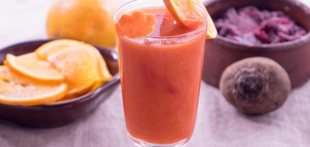 - ضع الجزر، والشمندر، والبرتقال في وعاء الخلاط، ثمّ شغله على سرعة متوسطة إلى أن تتجانس جميع المكوّنات.
