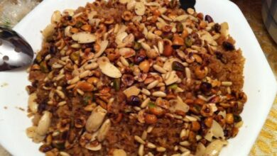 • تُخفض النار، ويُغطّى الإناء، ويُترك لمدةّ نصف ساعة حتى يُطهى بهدوء، وينضج.