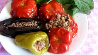- تتبيل اللحم بالبهارات والملح، وإضافة البندورة والبصل المجهزان مسبقاً، وعجن الللحم بالمكوّنات المضافة جيداً، حتى يصبح حشوةً جاهزةً للاستخدام.