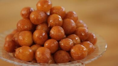 • نطفأ النار، ونضيف ماء الورد وماء الزهر أو أي مطيّبات أخرى ويوضع القطر جانباً حتّى يبرد.