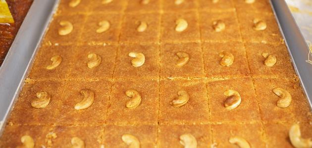 - قطّع البسبوسة حسب الرغبة، ثُمّ قدّمها.