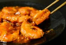 • قلي الكمية المتبقية من القريدس بِنفس الطريقة.