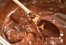 3. تُحرّك المكونات ببطء لمدّة دقيقتين حتى تذوب الشوكولاتة وتتجانس المكونات معًا، ويُصبح قوام الجناش ناعمًا، ثم يُترك جانبًا حتى يبرد ليُصبح قوامه أكثر كثافة.