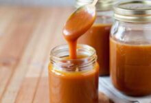 1. تُوضع الكريمة في قدر صغير على نار منخفضة مع تحريكها باستمرار حتى تسخن، ثم يُرفع القدر عن النار.