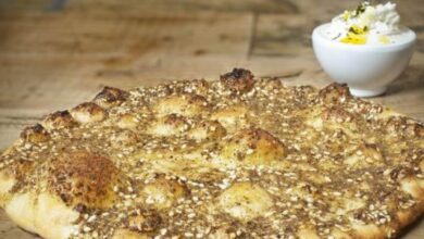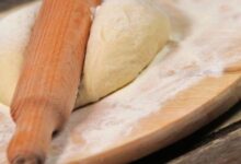 - بعد أن ترتاح العجينة، ارفعيها من الوعاء باستخدام المكشطة، وضعيها على سطح ناعم كسطح الطّاولة، وذلك بعد رشّ السّطح بالقليل من الطّحين قبل وضع العجينة فوقه.