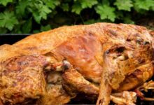 • إخراج الدجاج من الفرن وتركه لمدة عشر دقائق، ثمَّ قص الكيس بحذر، وإخراج البخار المتجمع في الكيس بسرعة.