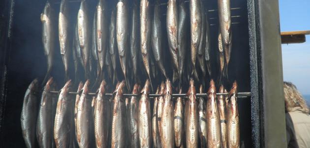• شوي سمكات الرنجة على النار مباشرة أو على مشعل أو على شواية أو مقلاة شوي ثم وضعها في وعاء كبير.