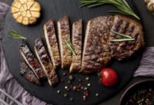 - دهن الستيك بزيت الزيتون، وتتبيلها من الجنبين بكميةٍ وفيرةٍ من الملح والفلفل المطحون طازجاً.