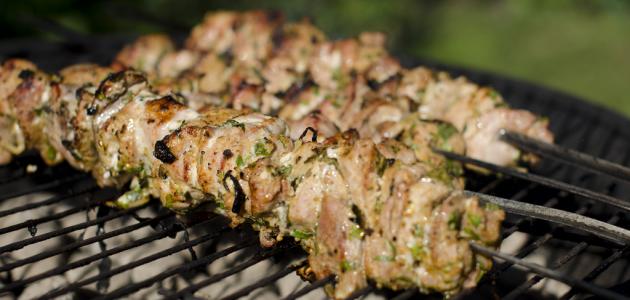 شكّ قطع الدجاج والخضروات المشكلة في أسياخ الشواء الخشبية أو المعدنية.