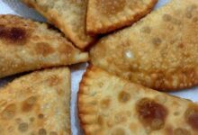 - نفرد العجينة ونقطعها إلى دوائر، ثمّ نضع في كلّ دائرة القليل من الحشوة.