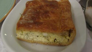 - نوزع الحشوة على العجين، ثمّ نضع الصفيحة في الفرن حتى ينضج اللحم.