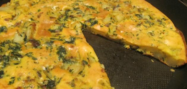 - نقلب العجة إلى الأعلى ونتركها حتى تتحمر، ثم نرفعها عن النار ونضعها في صحن للتقديم، وتقدم.