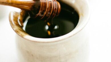 • نذوب الزبدة مع العسل والسكر في حمام مائي مع التحريك بشكل مستمر من وقتٍ لآخر.