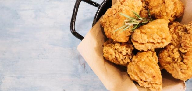 - غمس قطع الدجاج بخليط الطحين، ثمّ قليه في الزيت.