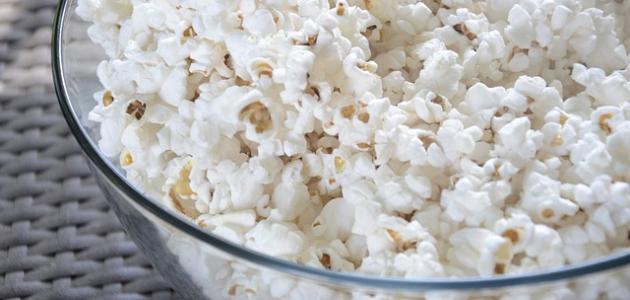 وضع الفشار في طبق كبير ورجه لتسقط الحبوب الغير مفرقعة للقاع والتخلص منها.