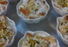 - نضع القشطة بصينية مفرودة حتى تبرد بدرجة حرارة المطبخ، ومن ثم نضعها في الثلاجة حتى تبرد تماماً.