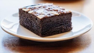 • توزيع الكريمة على قوالب الكيك، وتزيينها بالشوكولاتة المبروشة.