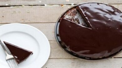 - ترك الكيك ليبرد تماماً وتتماسك الشوكولاتة، ثم نثر القليل من السكر البودرة وتقدم مباشرة.
