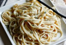 • إذابة كميّة وافرة من الزبدة في قدر على النار، ثمّ إضافة كلّ من الطحين، والفلفل الأسود، والملح، وجوزة الطيب، والحليب، مع تقليب المكوّنات حتّى تتماسك، وترك المزيج جانباً لحين الاستخدام.