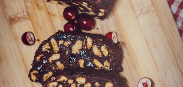 • تفتيت البسكويت ووضعه في وعاء خلط ثمّ تقليبه مع الكاكاو، والحليب المكثّف حتى تغليفه بالكامل.