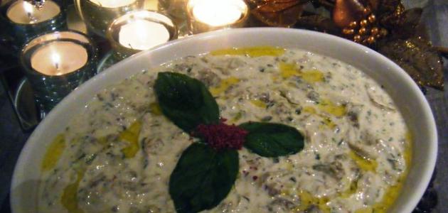 • خلط اللبن الزبادي مع لب الباذنجان المشوي والطحينة وعصير الليمون ورشة من الملح والفلفل الأسود في وعاء كبير، ثمّ تقليبهم جيداً.
