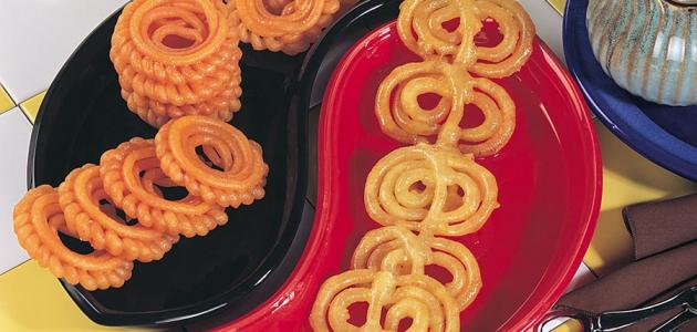 - ضع حلقة دائرية الشكل في طنجرة وارفعها على النار وضع فيها زيت قلي، ثمّ استخدم قمعاً لتصنع شكل المشبك داخل الحلق، واقلبه على الوجه الآخر، ثمّ ضعه سريعاً في شربات جاهزة وملونة بلون الطعام البرتقالي وقدّمه.
