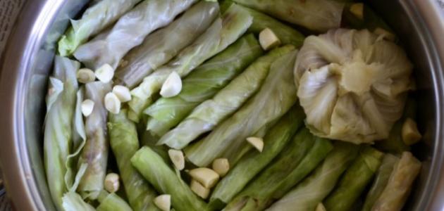 - نجهّز قدر الضغط: نضعُ بقاعدته بعضَ أوراق الملفوف المسلوقة، ثم نبدأ برصّ أوراقِ الملفوف المحشوّ فيه فوق بعضها البعض.