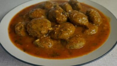 • نقلي النّصف الآخر من الثوم بزيت الزيتون، ونُضيف إليه الكزبرة الخضراء، ثمّ نُضيفه إلى اليخنة وهي ما تسمّى بالعربيّة (القدحة)، ونُضيف إلى اليخنة عصير الليمون -حسب الرّغبة- ثمّ نُقدّمها مع الأرزّ الأبيض الساخن.
