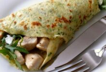 - تسخين المقلاة وسكب القليل من المزيج في المقلاة الساخنة وتركه حتى يحمر وتظهر الفقاعات ثمّ قلبه على الوجه الثاني لعدة ثوانٍ، ثمّ رفعه من المقلاة.