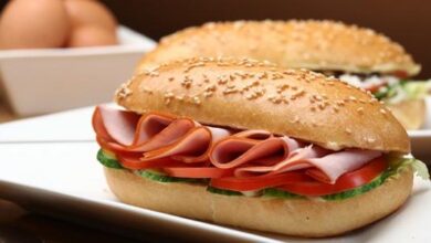 - أعد البرجر وشرائح البصل إلى المقلاة لمدة ثلاثين ثانية حتى تسخن إذا دعت الحاجة، ثم ضعها داخل أرغفة الخبز بحيث تدهن ملعقة صغيرة من المايونيز أولاً داخلها ثم تضع شريحة الجبنة وفوقها شريحة من البصل وبعدها اللحم “البرجر” ثم تضع بيضة، وكرر نفس الخطوات مع شطائر البرجر الثلاثة الأخرى.