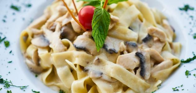 - ضعي في وعاء كلاً من: المعكرونة، والدجاج، والزيتون، والفطر، ثمّ أضيفي القليل من البشاميل.
