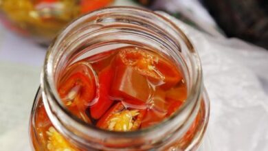 - أربع حبات من الفلفل الرومي المقطع إلى جوانح.