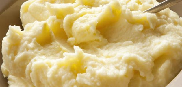 - تُهرس البطاطس مع الثوم باستخدام الخلاط الكهربائيّ، وتُوضع في إناء مع ربع كأس من الزبدة، وتُخلط جيداً، ثمّ تُوضع على نار هادئة لمدّة ثلاث دقائق فقط.