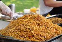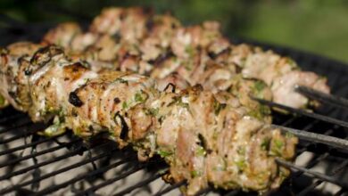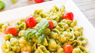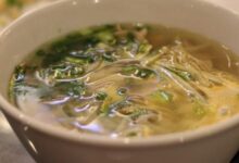 رش بعضاً من الفلفل الأسود المطحون على الوجه وبعضاً من البصل الأخضر المفروم وأوراق النعناع للتزيين.
