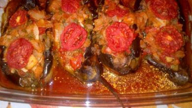 عمل ست فجوات صغيرة في الخليط بالمقلاة باستعمال ملعقة ومن ثم كسر البيض ووضعه في التجويفات المعمولة به.
