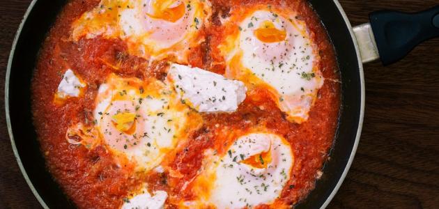 ترك المقلاة على نار هادئة حتى يتم طهي البيض قليلاً لمدة عشر دقائق تقريباً (في حال الرغبة بأن ينضج الصفار تماماً يتم طهو البيض لفترة أطول).