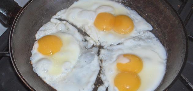 - نحضر البيض، ونضيفه للزيت مباشرةً دون تحريكه أو خفقه، ثمّ نغطّي البيض لمدّة ثلاث دقائق حتى ينضج، وهذا ما يسمّى ببيض العيون.