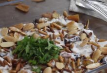تكون الطبخة جاهزة للأكل تقدّم مع قطع من الخبز.