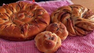 - نوزع الطحينة على الصينية من جميع الجهات كي لا تلتصق العجينة فيها.