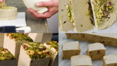 - وضع الحلاوة في الثلاجة لساعتين على الأقلّ حتى تتماسك، ومن ثم تقطيعها وتقديمها.