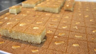 - نقلب قطع حلى السميد في طبق مناسب للتقديم.