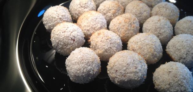 - نضع كرات جوز الهند في الثلاجة حتى تتماسك.