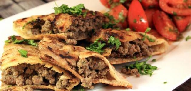 - نقطع رغيف الخبز إلى أربع قطع، ونحشوها بخليط اللحم السابق.